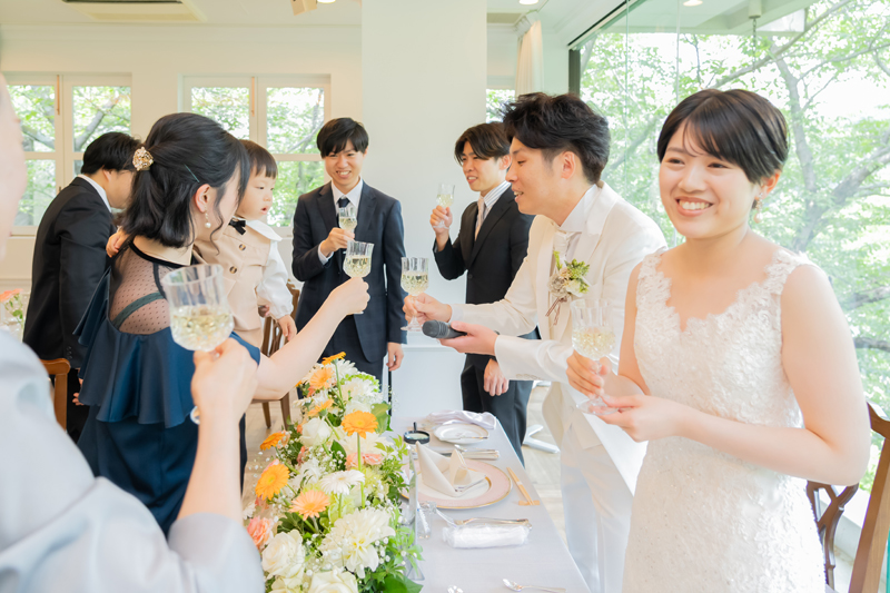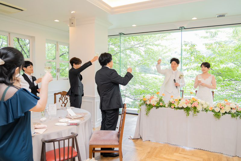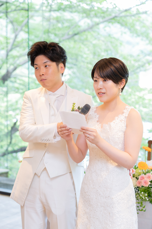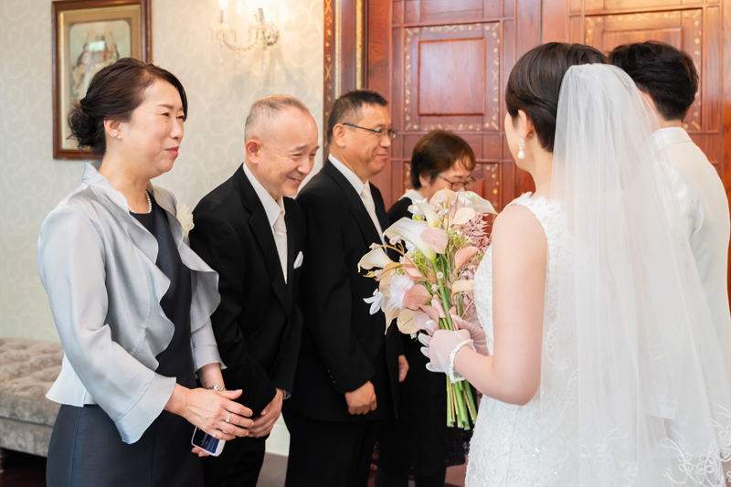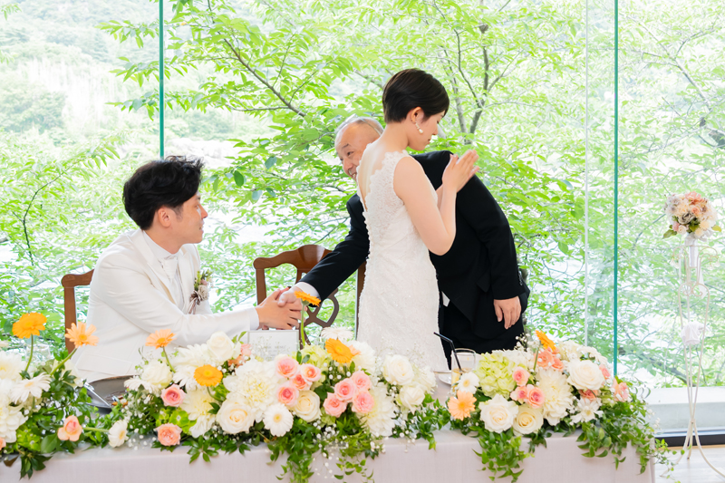 歴史ある建物と川の景色を気に入ってくださり、サクラヒルズをお選びいただいたおふたり。ご相談を重ねながら一緒に形にしていった一日は、ご家族やゲストの皆様にも喜んでいただける忘れられないひとときとなりました。