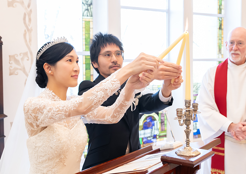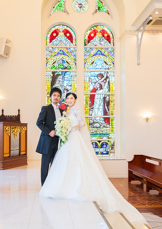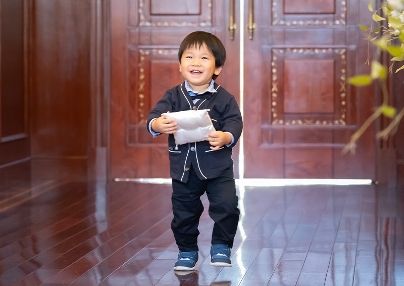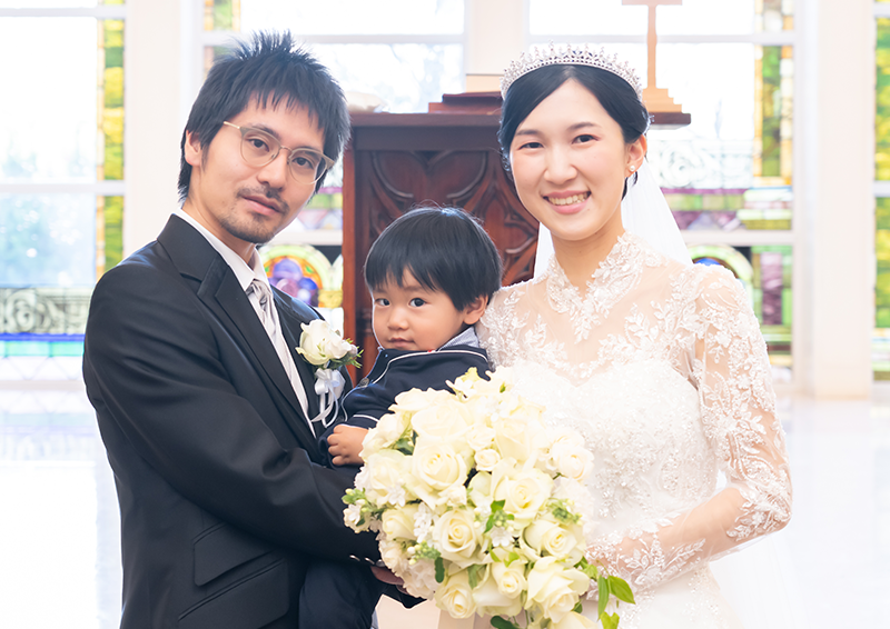 憧れていたブランドのウェディングドレスをどうしても着たくて、持ち込みができる式場を探していました。生まれ育った地元でアットホームな結婚式を挙げることができ、家族に囲まれてとても幸せな時間でした。1歳の息子がリングボーイとして登場したシーンは会場中が笑顔に。写真撮影も体調を気遣っていただき、リラックスして楽しむことができました。